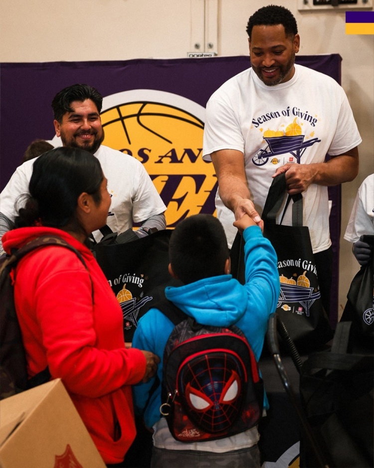 11月25日訊 今天,湖人官方INS曬出了三位前湖人球員為洛杉磯社區(qū)送火雞的照片。