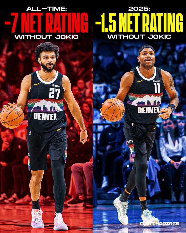 目前,當(dāng)約基奇不在場(chǎng)上時(shí),丹佛掘金隊(duì)的凈效率值為-1.5!