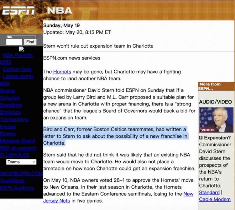 再各種壓力下,辛恩最終決定將球隊(duì)搬遷到新奧爾良。據(jù)說他自從2002年搬遷之后,就再也沒回過夏洛特,但后來他也承認(rèn),如果一切重來,他不會(huì)選擇立刻退出公共視野,應(yīng)該給夏洛特市民一個(gè)交代。