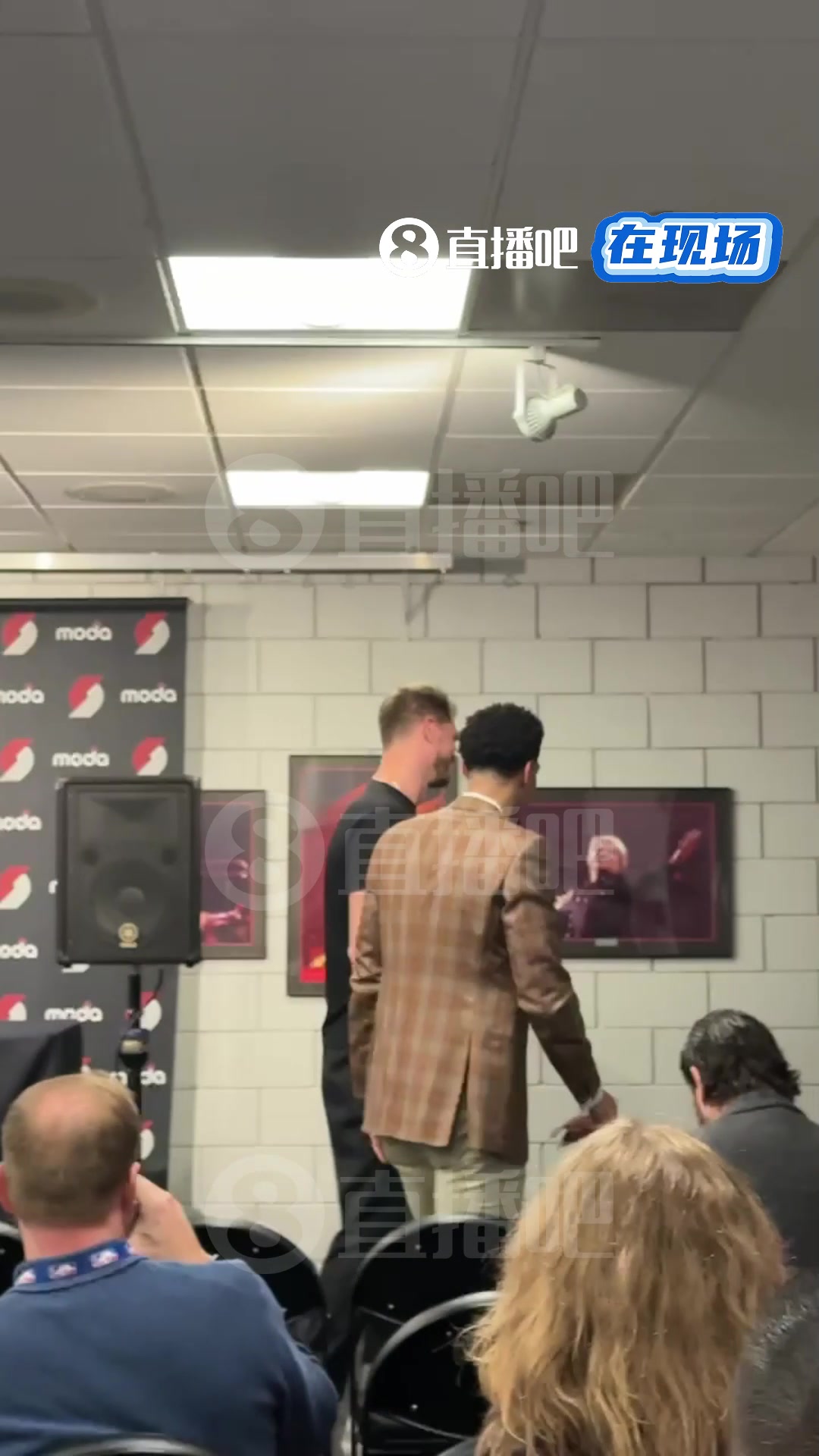 小吧直擊開拓者賽前發(fā)布會 斯普利特與丹尼·格林老友相見抱一抱~